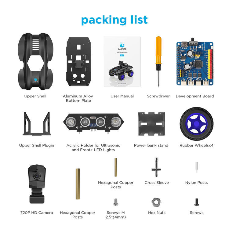 Quick and Easy Assembly: Coming with user manual, car accessories to be assembled, development board, 32G SD card and card reader, It's simple to assemble and easy to use. (Note: Raspberry Pi / power bank / battery are not included in the package.)
